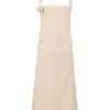 A full bib apron made from heavy cotton canvas fabric for a soft hand feel. Self fabric strap is sewn to the main body of the apron on one side and the wearer ties a knot around the large metal eyelet on the other side to form the neckband. Measuring 86cm long and 72cm wide. Wrap certified. Oeko-tex certified. BSCI certified. Reach certified. Sedex certified.