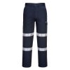 100% Pre shrunk cotton drill cargo pants with tape. Convenient pockets for extra style and storage, including a left leg cargo pocket plus ruler pocket, 2 large back pockets with touch tape closure and 2 deep hip pockets. Reinforced stress points, wider legs and an adjustable waist for wearer durability and comfort. Metal zipper and metal button closure. Double hoop reflective tape around both legs.