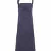 A full bib apron with style features taken from the popular ‘chino’ style. A stitched patch pocket with rivets features at the centre top and two side pockets big enough to carry tablet devices sit just below waist height. The neck strap is loose and the wearer can loop the end through the buckle and use the pop-snap buttons to fasten in place. Wrap certified. Oeko-tex certified. BSCI certified. Reach certified. Sedex certified.