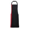 Classic premier bib apron with contrast coloured panel. Self fabric neck. Self fabric ties 90cm long, width 72cm, length 86cm. 60ยฐc domestic wash. Sliding adjusting buckle. Two front side pockets with slanted opening. BSCI certified. Reach certified.