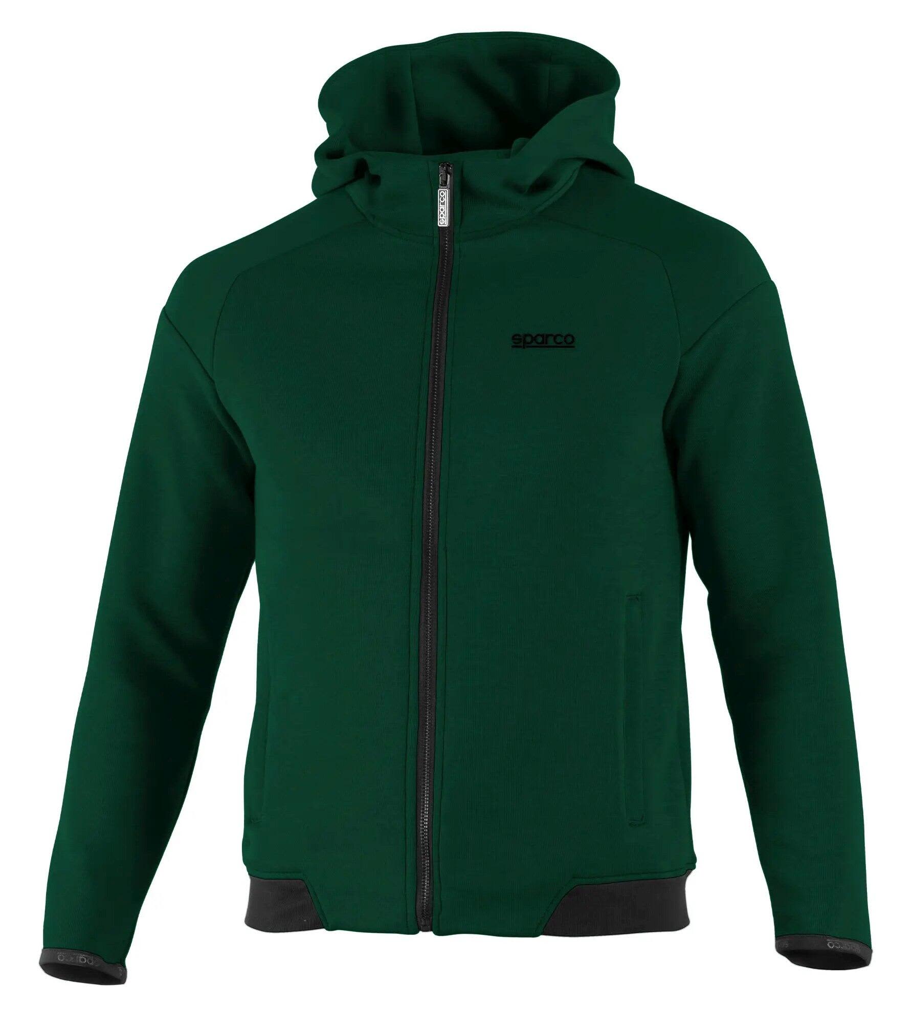 The Sparco full zip hooded jacket is designed for comfort and durability during long workdays.