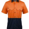 Urban fit | 98% Cotton, and 2% Elastane โ 150gsm twill | Complies with Standard AS 4399:2020 for UPF Protection (UPF 50+) | Complies with Standard AS/NZS 1906.4:2010 and AS/NZS 4602.1:2011 Day | Wide back yoke with concealed mesh, cooling gussets at underarms | Front chest pockets with button down flaps and pen insert | Contrast panel on front and lower back | Curved hem with back tail styling | Two piece collar