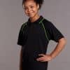 Description: Breathable diamond knitted fabric. Short raglan sleeves. Contrast piping on raglan sleeve seams and on collar.