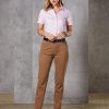 Style: Ladies Boston stretch Chino range is a slim fit pant with 2 front slant pockets and 1 back pocket with a top stitched hem.