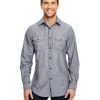 Burnside Men’s Long Sleeve Chambray Shirt, 135gsm, 80% cotton / 20% polyester blend, 2 chest pockets with button flaps, 2-piece collar, Western back yoke, Button cuffs