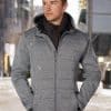 Bonded Cationic Heather quilted Jacket has a brushed inside adjustable hoodie. The jacket has a front full zip as well as front zip pockets.
