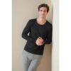 Fitted long sleeve T-shirt for men, made of a soft and sleek cotton-elastane-blend with contrast neck tape.