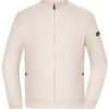 High-quality interlock fabric. Comfortable blend of organic cotton, recycled polyester and elastane. Stand-up collar. Full-length zip. 1 zip pocket edged with fashionable tape on the left sleeve. 2 side zip pockets. Elasticated cuffs and waistband.