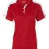 Sierra Pacific Ladies Moisture Wicking Knit Polo, 180gsm, 100% polyester, Moisture wicking, Contrast sleeves body and placket, Overlock stitching detail, Taped neck seam, 3 white pearlized buttons, Fashion knit collar, Double-needle stitching, Side vents