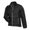 Durable ripstop fabric with showerproof construction, extremely lightweight, stand up collar with soft chin guard, storable hood with fastening, high loft for excellent insulation, side pocket with zipper closure, drop tail design for comfortable fit