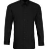 A men’s fitted Poplin shirt that offers a fashionable slim fit style. A stiff formal cut collar with double buttons to the cuff. Available in Black and White. WRAP certified. BSCI certified. Reach certified. SEDEX certified.
