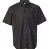 Sierra Pacific Men’s Tall Short Sleeve Denim Shirt, 220gsm, 100% cotton soft-washed cotton denim, Wood style buttons, Double-needle stitching, Felled seams, Button-down collar, Dark denim is stonewashed