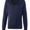 Women’s long sleeve v-neck jumper. Soft feel/cotton rich yarn. Fine gauge knit. Contemporary styling. Set in sleeves. Wrap certified. BSCI certified. Reach certified.
